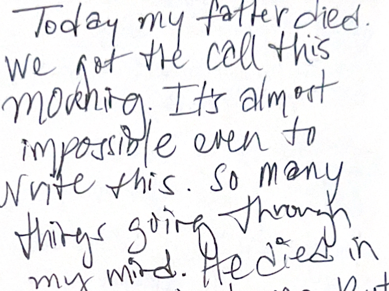 He died. My father died. He died. He died. He died. My sister and I stared at each other, trying to grasp at any words that might comfort us but none would do.